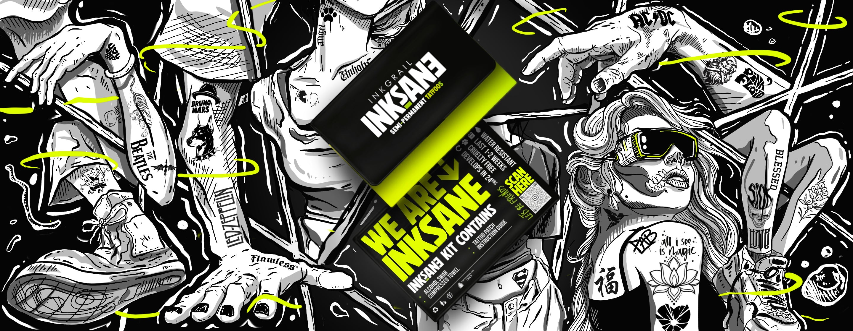 Made with organic ink that develops 24 hours after applying, and stains the skin for 1-2 weeks.